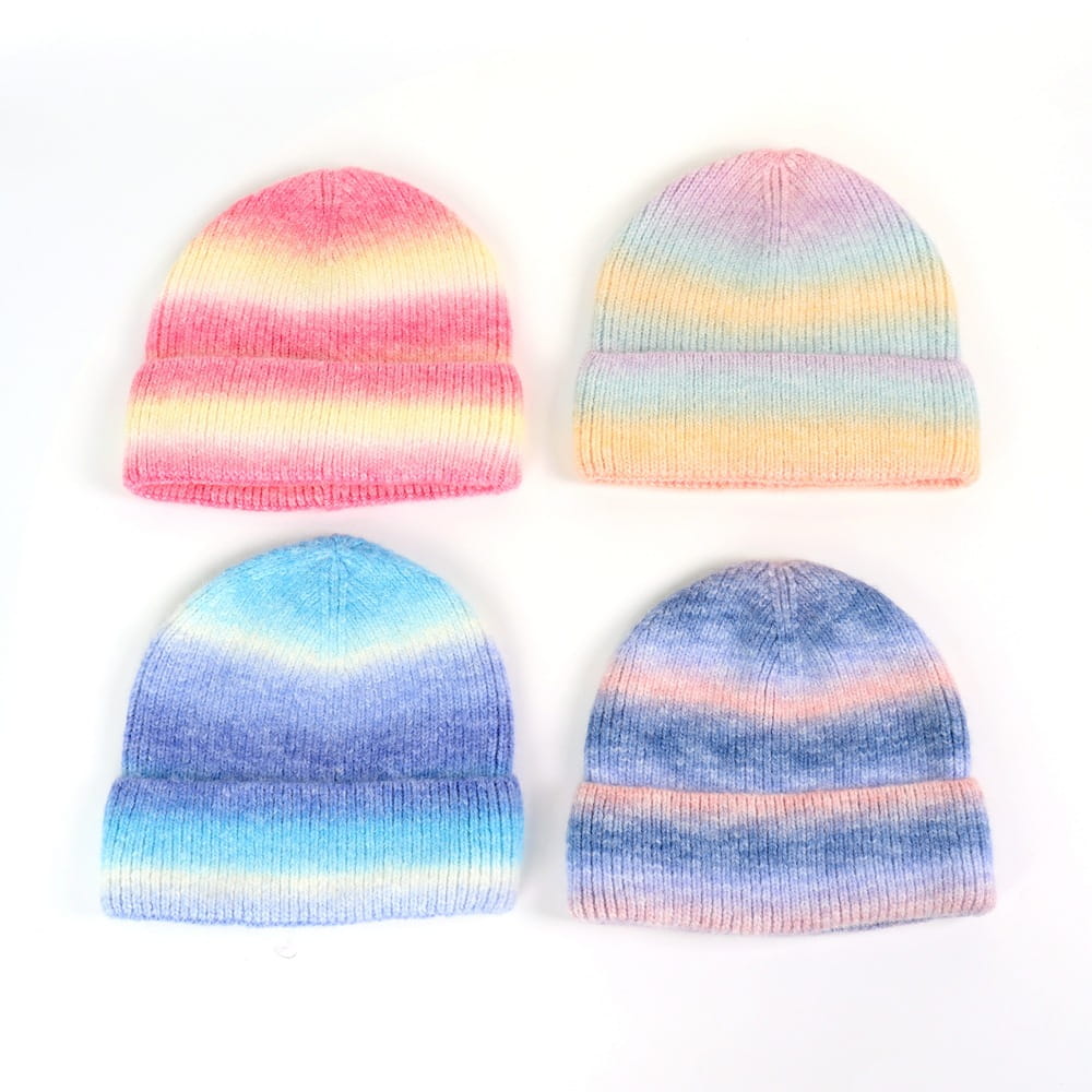 Каждая ссылка нашего H00031 Разноцветная акриловая вязаная шапка цвета радуги, окрашенная в технике тай-дай Продукция имеет специальный персонал по контролю качества, который проверяет три сотрудника по контролю качества, от проверки качества тканого изделия до готовой одежды..